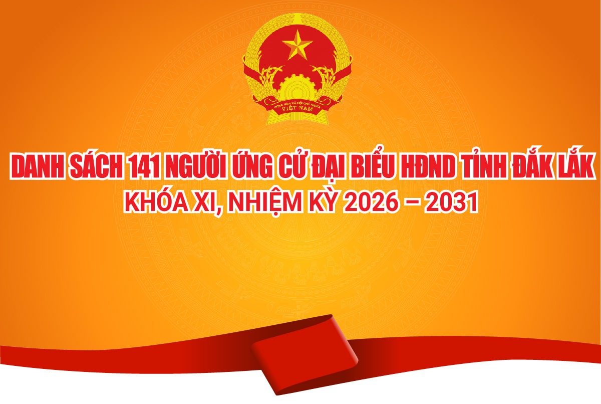 Ủy ban bầu cử tỉnh Đắk Lắk vừa ban hành Nghị quyết số 0122/NQ-UBBC về việc công bố danh sách chính thức những người ứng cử đại biểu HĐND tỉnh Đắk Lắk khóa XI, nhiệm kỳ 2026 – 2031 theo từng đơn vị bầu cử.