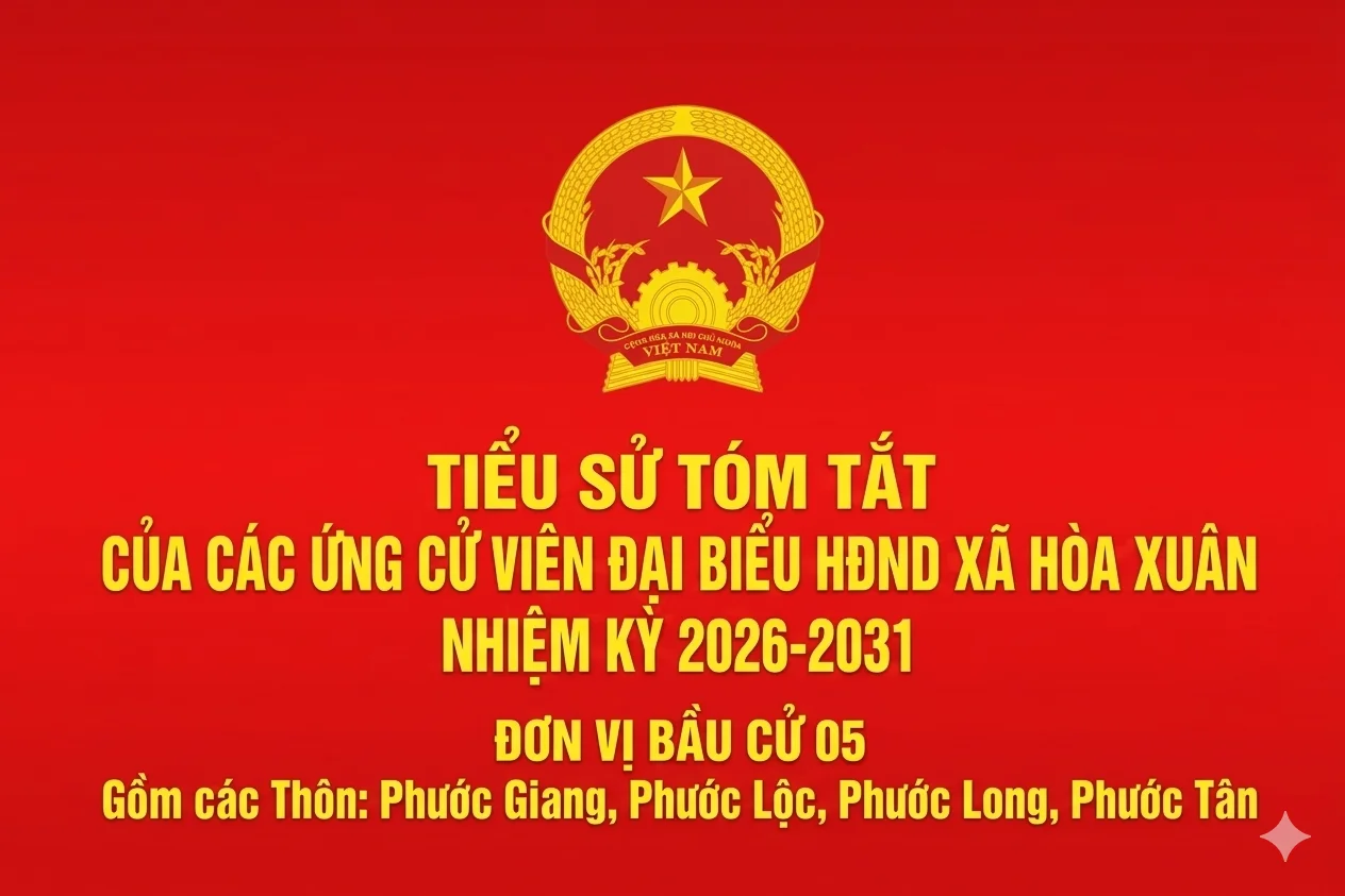 Chia sẻ 0FacebookTwitterEmail 1 Chia sẻ 0 FacebookTwitterEmail Tin liên quan Đánh dấu (Infographic) Tiểu sử tóm tắt các ứng cử viên đại biểu HĐND xã... 05/03/2026 Đánh dấu (Infographic) Tiểu sử tóm tắt các ứng cử viên đại biểu HĐND xã... 05/03/2026 Đánh dấu (Infographic) Tiểu sử tóm tắt các ứng cử viên đại biểu HĐND xã... 05/03/2026 Đánh dấu (Infographic) Tiểu sử tóm tắt các ứng cử viên đại biểu HĐND xã... 05/03/2026 Đánh dấu (Infographic) Quy trình bỏ phiếu bầu cử đại biểu Quốc hội khóa XVI... 05/03/2026 Đánh dấu (Infographic) Danh sách 35 người ứng cử đại biểu HĐND xã Hòa Xuân... 04/03/2026