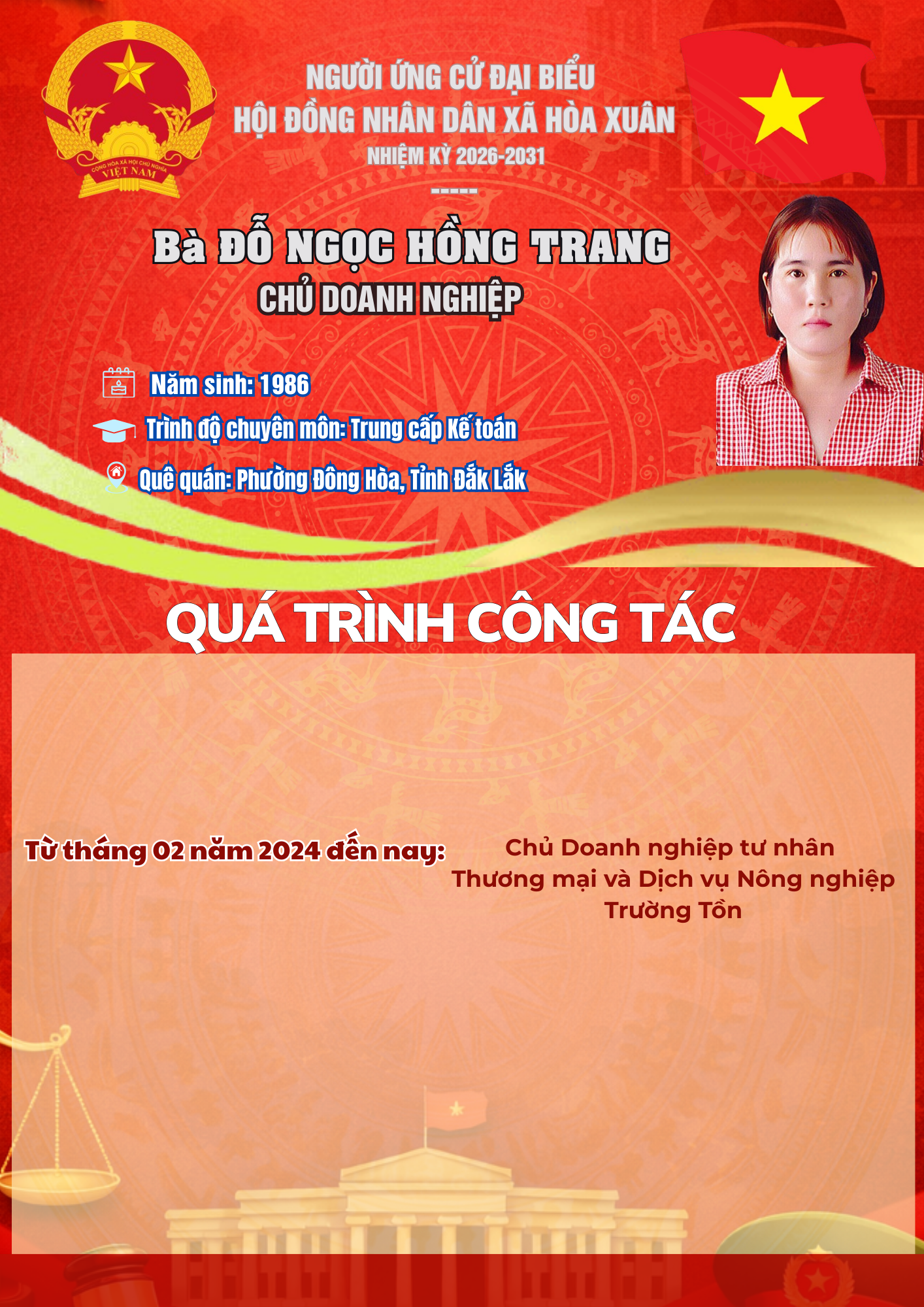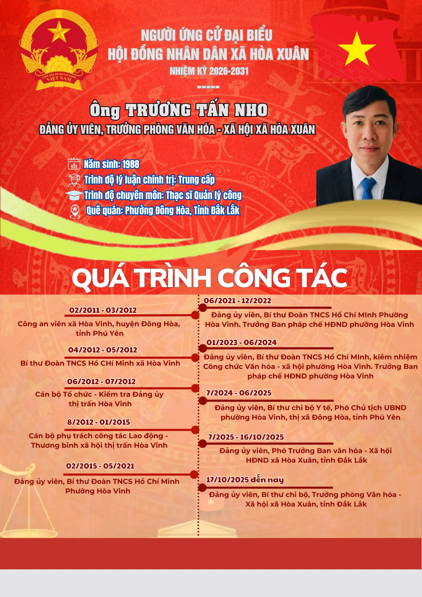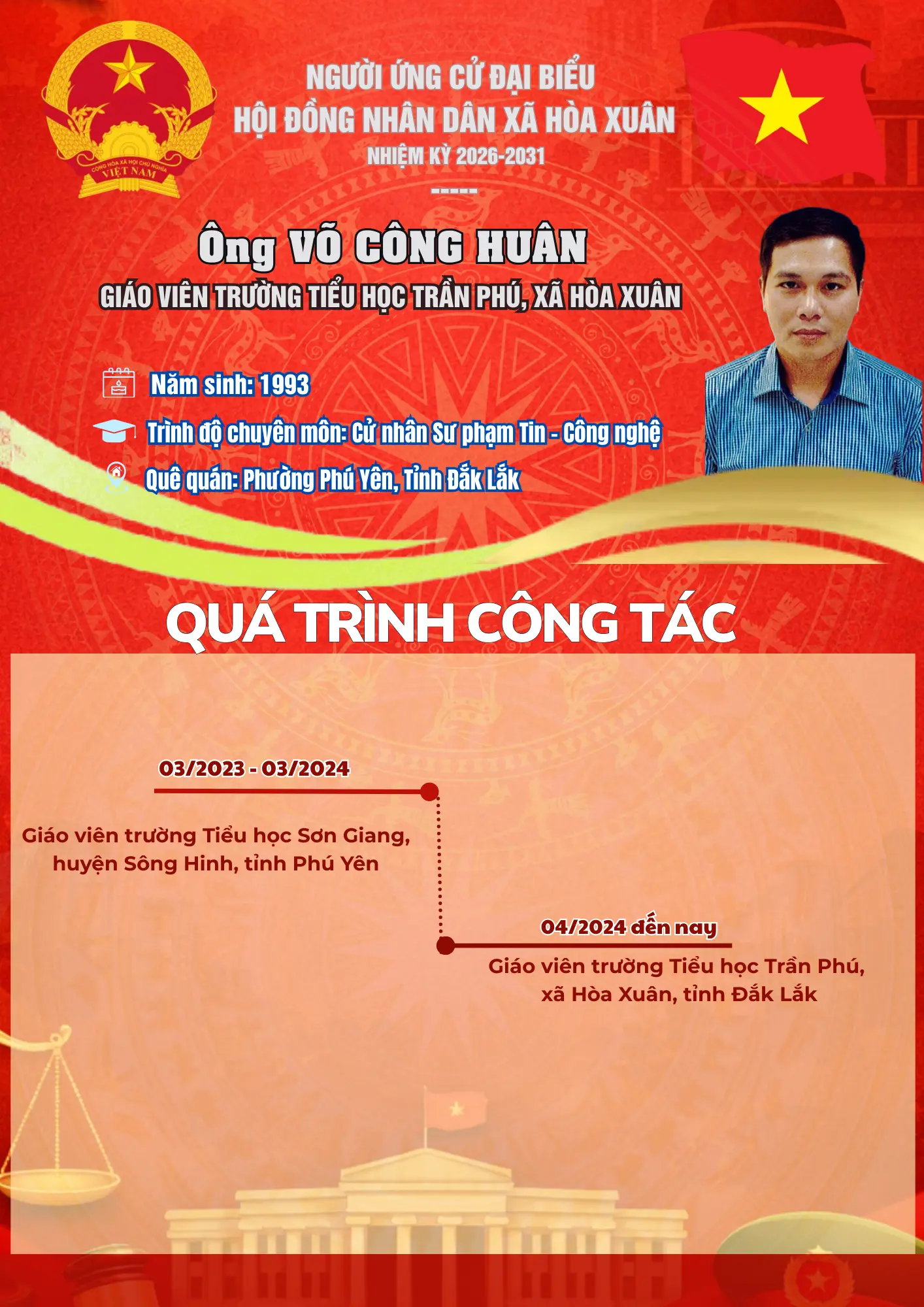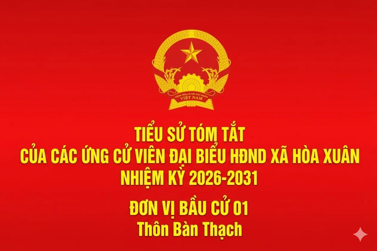 Chia sẻ 0FacebookTwitterEmail 3 #BauCuHĐND #HoaXuân #NhiemKy2026_2031 #CuTri Chia sẻ 0 FacebookTwitterEmail Tin liên quan Đánh dấu (Infographic) Tiểu sử tóm tắt các ứng cử viên đại biểu HĐND xã... 05/03/2026 Đánh dấu (Infographic) Quy trình bỏ phiếu bầu cử đại biểu Quốc hội khóa XVI... 05/03/2026 Đánh dấu (Infographic) Danh sách 35 người ứng cử đại biểu HĐND xã Hòa Xuân... 04/03/2026 Đánh dấu (Infographic) Danh sách chính thức 25 ứng cử viên đại biểu Quốc hội... 03/03/2026 Đánh dấu (Infographic) Danh sách 141 người ứng cử đại biểu HĐND tỉnh Đắk Lắk... 03/03/2026 Đánh dấu Tiểu sử tóm tắt các ứng cử viên đại biểu HĐND xã Hòa... 01/03/2026
