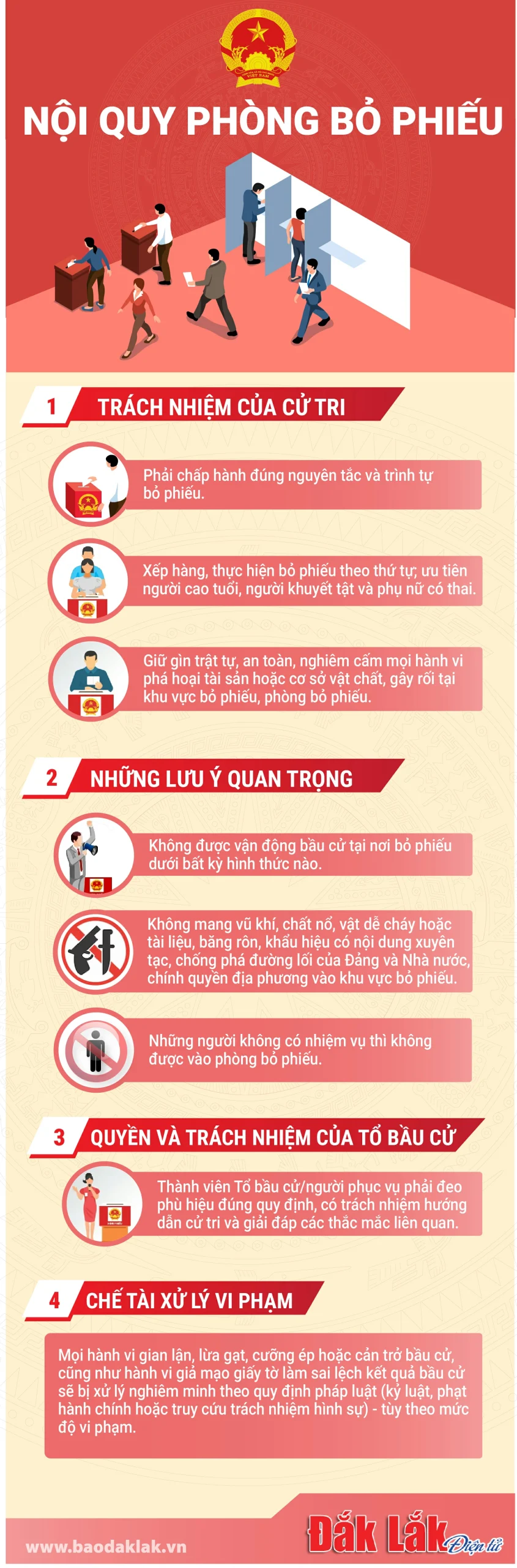 Để thực hiện đồng bộ, thống nhất trong toàn tỉnh về công tác bầu cử đại biểu Quốc hội khóa XVI và đại biểu HĐND các cấp nhiệm kỳ 2026 – 2031, Ủy ban Bầu cử tỉnh đã quy định nội quy phòng bỏ phiếu.