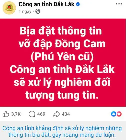 Trước thực trạng tin giả đang tràn lan, nhất là trong khi toàn bộ hệ thống chính trị đang căng mình giúp dân, chính quyền tỉnh Đắk Lắk và lực lượng công an đã liên tục phát đi cảnh báo, khẳng định sẽ xử lý nghiêm những người đăng tải, chia sẻ tin giả, tin xấu độc.